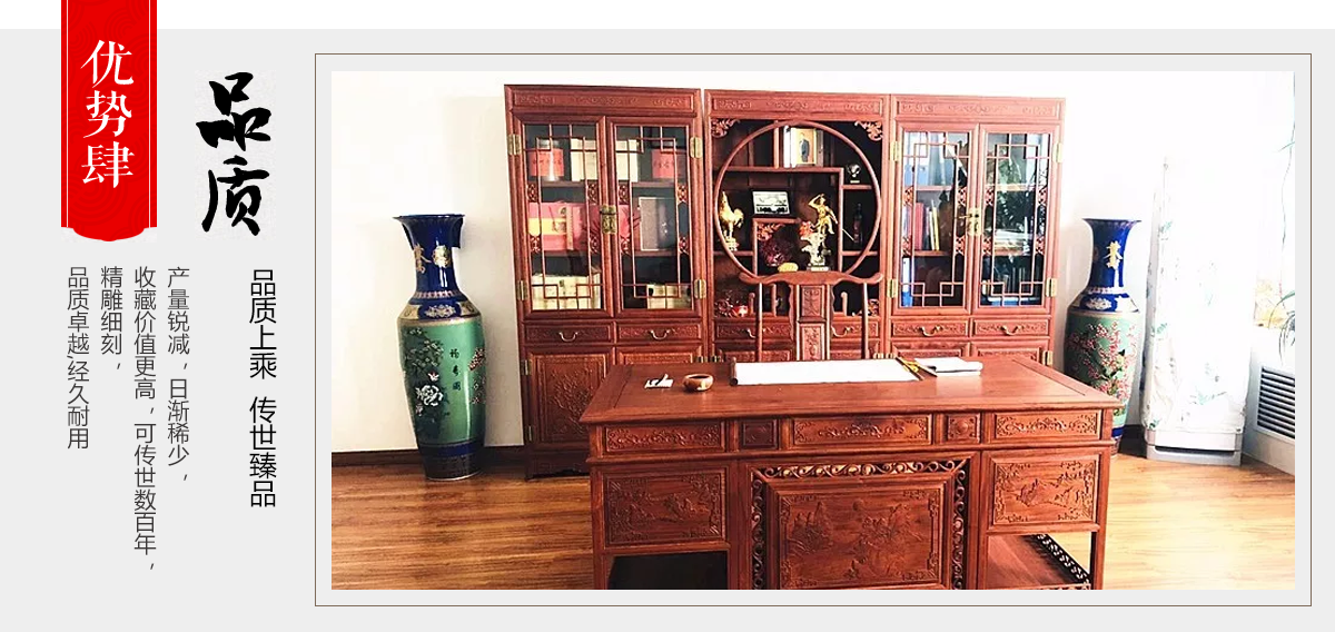 東陽市大聯(lián)福林堂紅木家具廠座落于素有“東方好萊塢”之稱的國家AAAAA級影視旅游基地橫店影視城, 是一家集開發(fā)、設(shè)計、生產(chǎn)、銷售、服務(wù)為一體的綜合型企業(yè)。本公司匯集一批具有豐富生產(chǎn)經(jīng)驗的能工巧匠,具有豐富的紅木家具設(shè)計生產(chǎn)經(jīng)驗。本公司產(chǎn)品主要選用紫檀、花梨、酸枝、雞翅等優(yōu)質(zhì)紅木,并采用純天然蜂蠟飾面。經(jīng)過蒸煮、脫脂、烘干、定型等多道工序嚴格處理,福林堂紅木始終嚴格秉承“質(zhì)量第一”、“信譽至上”的經(jīng)營理念,在繼承傳統(tǒng)工藝的基礎(chǔ)上,不斷創(chuàng)新,大力引進先進家具設(shè)備、烘干設(shè)備,實現(xiàn)了現(xiàn)代生產(chǎn)工藝與傳統(tǒng)表現(xiàn)手法的有機相融。